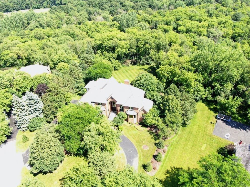 Aerial front view of home backs to conservancy on a cul-de-sac
